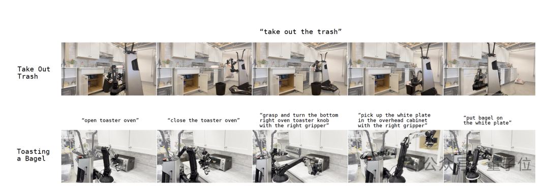 能够完成切黄瓜、削皮、倒垃圾等一系列任务,显示了模型的强大潜力。