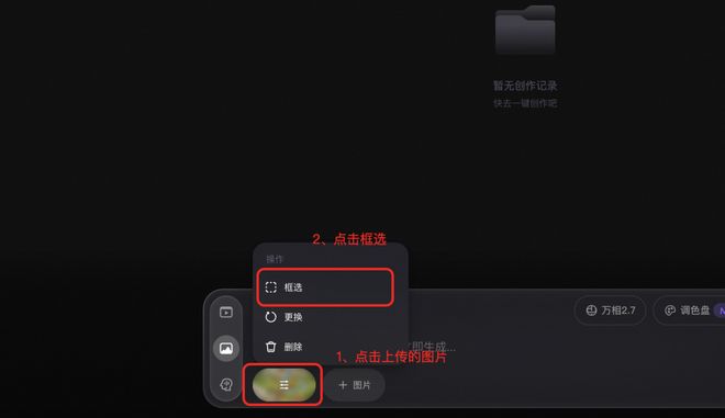 万相网页版已经内置了完整的调色盘交互,三步搞定: