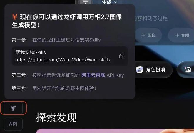 万相网页版还提供了多种便捷接入的方式供用户选择。例如,在“龙虾”插件中通过简单的对话指令就能快速安装并启动相应的生图技能,进一步简化了操作流程。