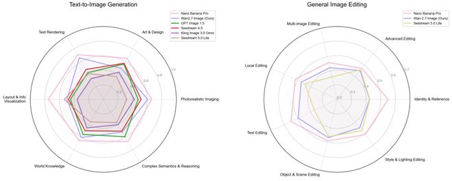 在人类偏好盲测中,Wan2.7-Image的文生图能力超过GPT Image 1.5和国内主流模型,在文本渲染、照片级成像和世界知识三个指标上,逼近Nano Banana Pro,可谓国内最强生图模型。