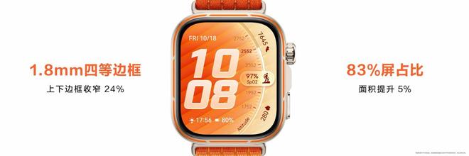 在显示效果与制造技术方面,华为WATCH FIT 5 Pro配备了1.92英寸的大屏幕,四边等宽的设计使屏占比达到了83%,是FIT系列中最高的。同时,其峰值亮度也提升到了2500nits,确保了在强光环境下的视觉清晰度。