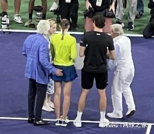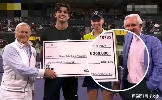 当地时间3月6日,澳网新科冠军莱巴金娜与美国名将弗里茨联手夺得了本次赛事慈善混双赛的桂冠,并赢得了20万美元奖金。这本应是属于网球和胜利的美好时刻,然而,在颁奖合影环节中却出现了一个意外。