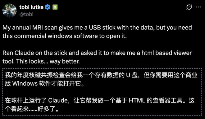 Shopify首席执行官Tobi自己开发了一款MRI图像分析工具,这在过去只能通过商用软件实现;
