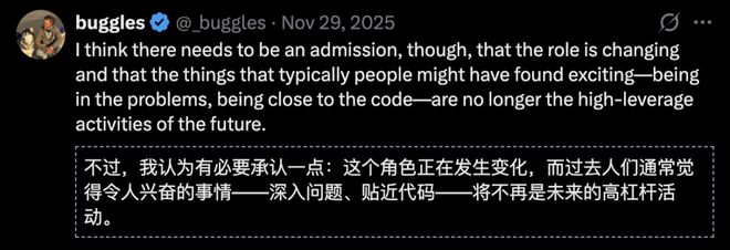 Anthropic的工程师表示,“我已经不再写代码了。我只是让模型来写代码,然后我进行编辑,并处理周边的事情。”
