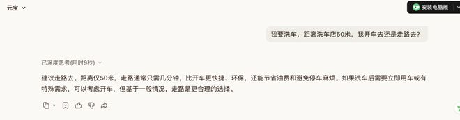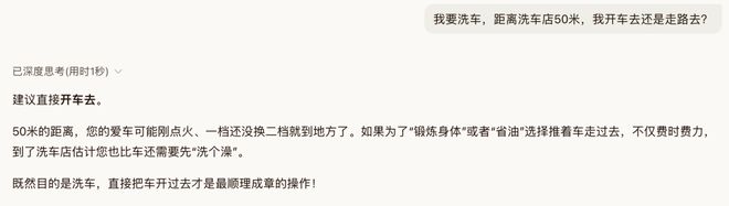 要知道,这个问题DeepSeek深度思考了9秒,告诉我应该走路去。
