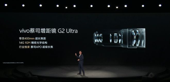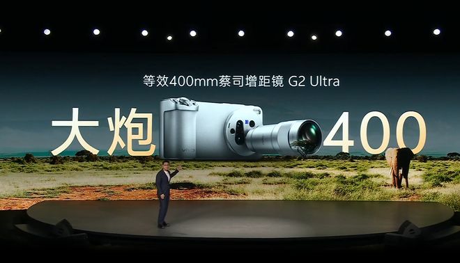 这次vivo特别开发蔡司增距镜G2 Ultra,等效400mm,内部光学结构进一步升级,支持17.4倍光学直出2亿像素照片,vivo称之为“大炮400”。