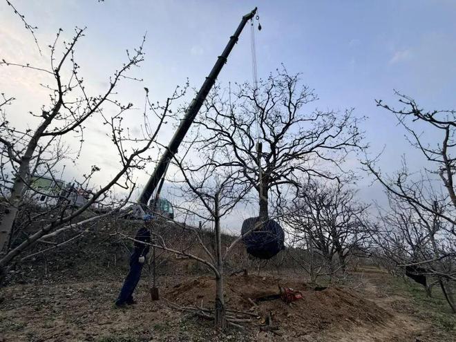 收到树的消息后,买家立刻安排吊车和营养土准备迎接新树的到来。