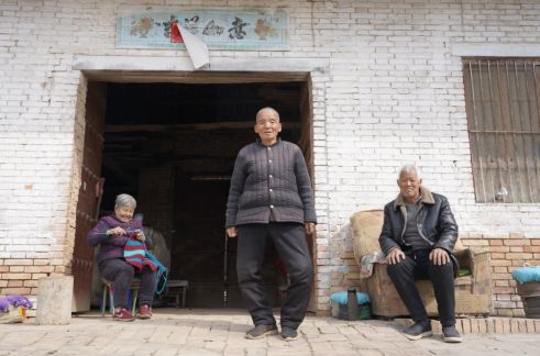 ▲“旱腰带”上的村庄里,老人们闲坐在家门口聊天、打毛活。新京报记者 丛之翔 摄