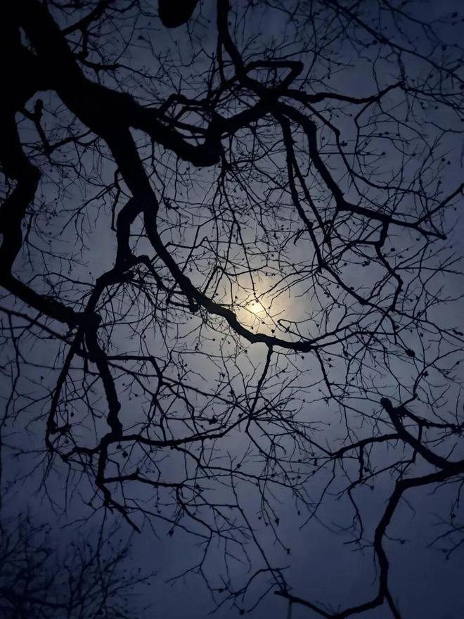 ▲夜晚,村里地头的柿树树冠。新京报记者 丛之翔 摄