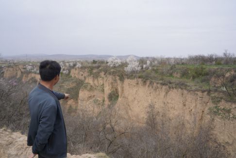 车里的人早已习惯头与车顶频繁接触。这里是常年少雨、地形破碎的黄土丘陵,人称“旱腰带”。车翻过一个个陡峭的土坡,稍不留神,田间就突然冒出一道百米深沟,崖壁垂直向下,像劈开的砖。