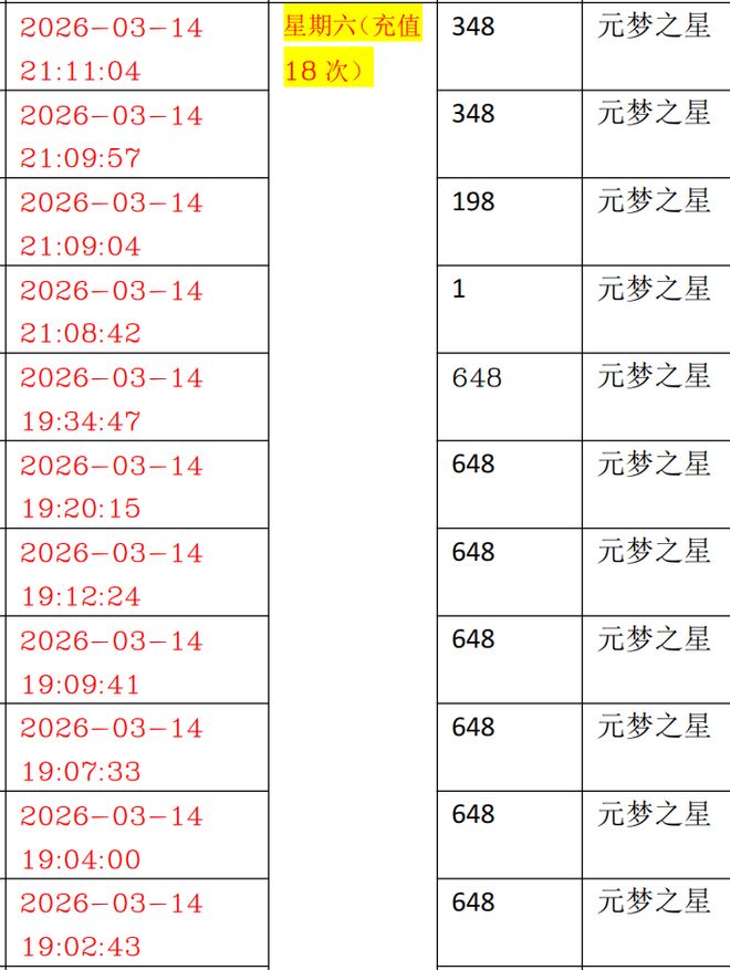 李先生向平台提供了游戏的充值记录。数据显示,他的长女从2月7日到3月16日期间进行了总共66次的充值操作,总额为25064元。其中,在3月14日和15日内连续充值了38次,金额超过了一万七千多元,单笔最高记录是648元。