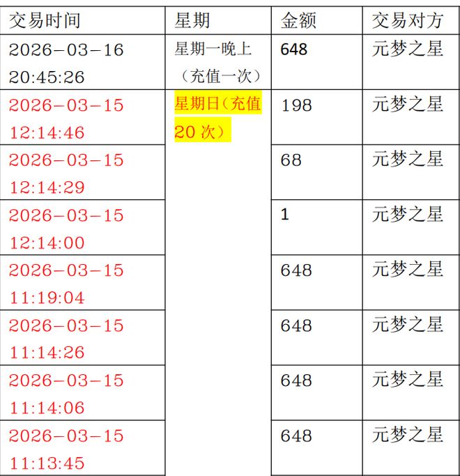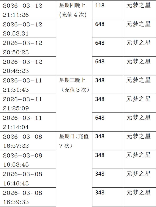 李先生提供的部分游戏充值记录显示,这些支付主要发生在工作日晚上以及周末时段。