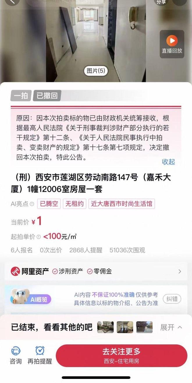 近日,在西安出现了一套建筑面积为148.91平方米的住宅,其起拍价仅为一元人民币。该房产原定于四月十四日在网络平台上进行拍卖,吸引了超过五万名网友的关注。然而,法院已决定撤回此次拍卖。