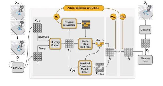 当前,基于预训练视觉表征构建世界模型已成为具身智能领域的一项重要研究方向。例如,DINO-WM 等先进成果表明,利用视觉 Transformer (ViT) 架构可以准确捕捉复杂的物理动态,并具备强大的零样本规划能力。然而,该方法在处理所有图像块时采用密集计算的方式,导致大量资源被浪费在静态背景上,从而造成了高昂的计算成本和决策速度减缓的问题。
