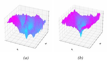 移除 LRM 之后,模型产生的代价地形崎岖不平,噪声大,峰形呈锯齿状,没有明显的全局最小值(图 6(a))。这种地形上任何基于采样的优化器都无法找到有效的下降方向,在闭环规划中就会失败。相反的是, 带有 LRM 的 DDP-WM 模型生成的代价地形非常平滑,并且有明显的漏斗状宏观结构,中间有一个深的、唯一的最小值(图 6(b))。这种地形给优化算法提供了一个清晰的引力井,从而可以稳定地收敛到最优解。
