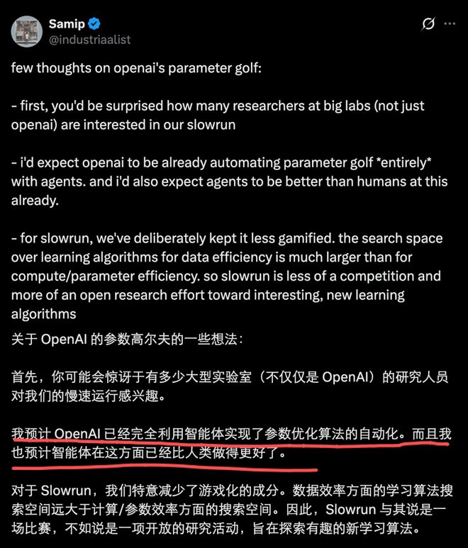 一位 X 用户认为 OpenAI 本应已经用 AI Agent 全自动完成了这项工作,而且 Agent 应该已经比人更强。OpenAI 还在用「人类比赛」的形式做参数优化,有点复古。