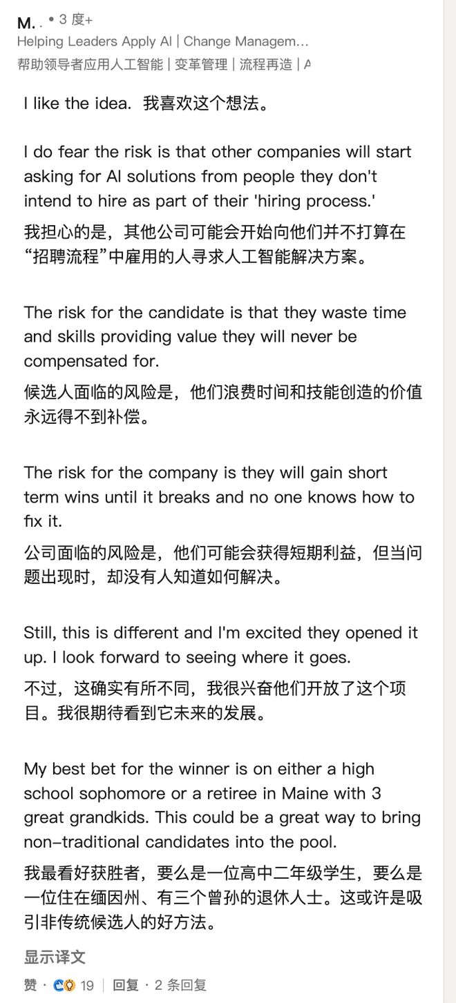 但也有人担心其他公司可能会效仿,但又学走了样,只白嫖方案,不招人。