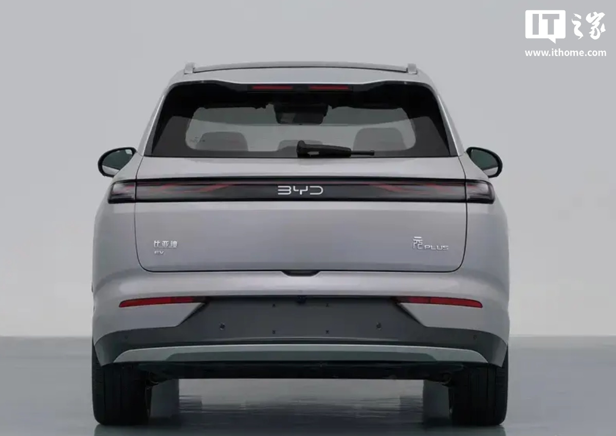 据申报图显示,新款比亚迪元 PLUS 继承了龙颜设计美学的特点,但在整体造型上更为扁平化。车身细节包括半隐藏式门把手以及贯穿式的尾灯设计,内部光源呈现波浪状效果。
